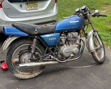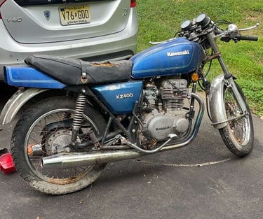 I found this 1979 Kawasaki KZ400 on the side of the road, below is a representation of the steps I took to restore it.
